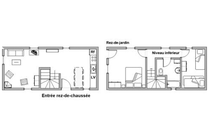 L’intérieur comprend un séjour avec cheminée, TV, cuisine à l’américaine avec lave vaisselle, 1 chambre avec 1 lit double (1m60 sur 2m) ainsi qu’1 chambre enfant avec 1 lit superposé et 1 lit simple, et 1 salle de bain. TV, lave vaisselle, cuisinière, four à gaz, four micro- ondes, frigo et congélateur.