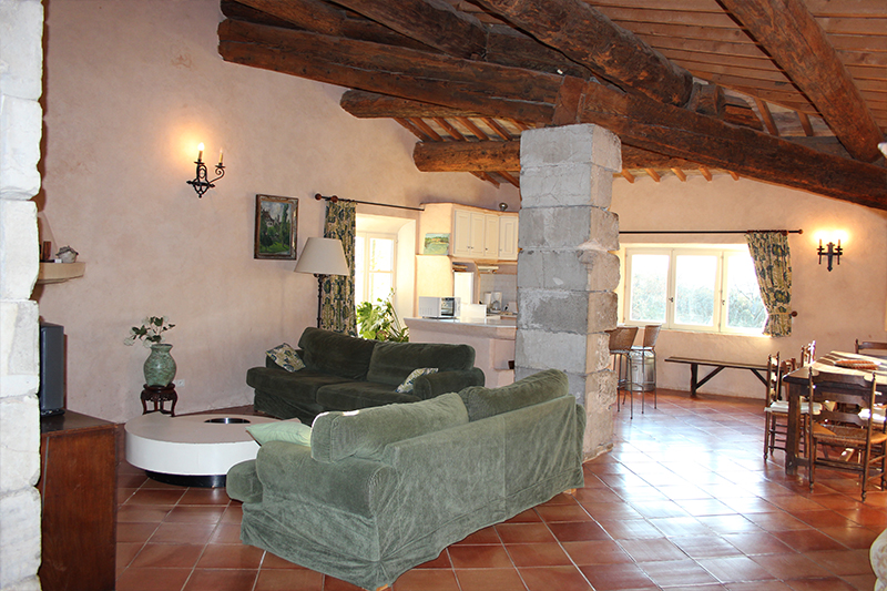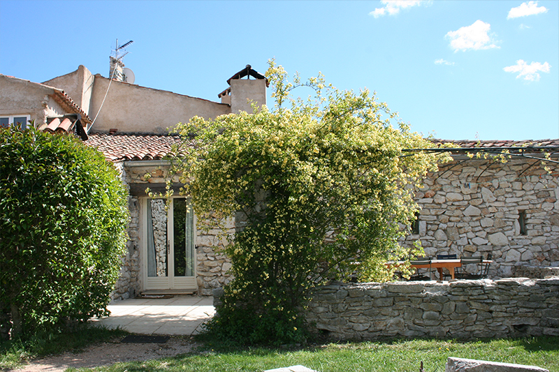 Gîte de 6 personnes agrémenté d’une grande terrasse avec pergola et salon de jardin et vue splendide sur les collines de Provence. L’intérieur comprend un grand séjour avec cheminée, TV, cuisine à l’américaine.