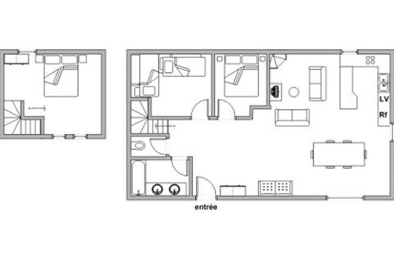 2 chambres avec chacune 1 lit double (1m60 sur 2m) ainsi qu’1 chambre avec 2 fois 2 lits superposés, et 1 salle de bain et WC séparé. Comprends TV, lave vaisselle, cuisinière, four à gaz, four micro- ondes, frigo et congélateur.